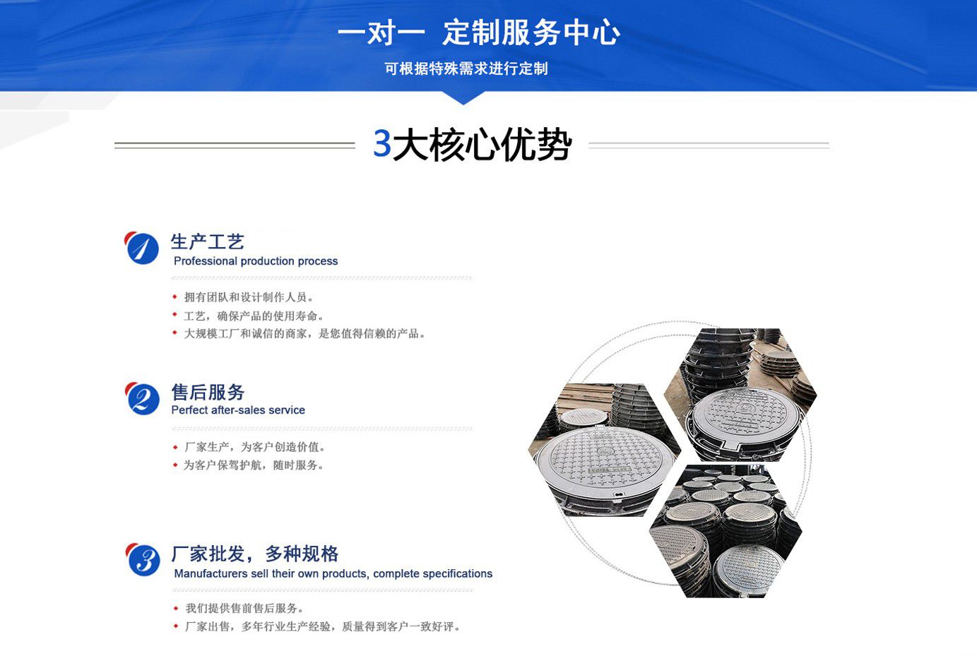 山東聊城健暉鑄造有限公司主營(yíng)各種球墨鑄鐵井蓋,球墨鑄鐵防盜井蓋,球墨鑄鐵方形井蓋,球墨鑄鐵井蓋廠家等產(chǎn)品,可廣泛應(yīng)用于市政建設(shè)、軌道交通設(shè)施、城市園林綠化、安防配套設(shè)施、石油化工等諸多領(lǐng)域。  產(chǎn)品采用良好的工藝流程,以確保產(chǎn)品質(zhì)量的穩(wěn)定性:以良好的檢測(cè)設(shè)備,確保質(zhì)量的可靠性。廣泛應(yīng)用于國(guó)內(nèi)外城市的市政建設(shè),通信,自來水,消防,園林,環(huán)保等行業(yè),產(chǎn)品大獲贊譽(yù)!  我們堅(jiān)持“質(zhì)量為本、用戶至上、科技創(chuàng)新、科學(xué)管理”的經(jīng)營(yíng)方針。  面向未來,我們積極響應(yīng)新時(shí)代的號(hào)召,走“一帶一路”、堅(jiān)持“綠色環(huán)保”的國(guó)家方針政策,秉承“安甄致選,普利天下”的企業(yè)理念,共同鑄就新時(shí)代的輝煌篇章。...